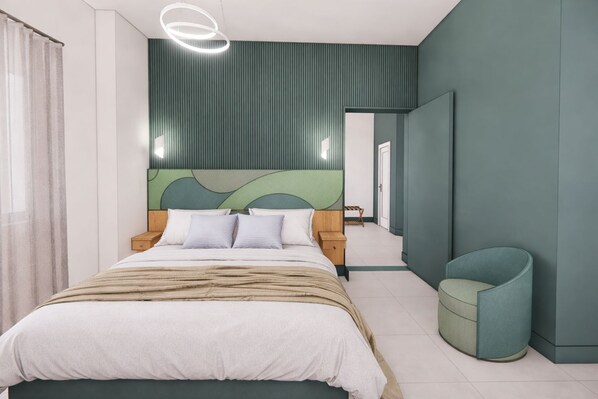 Habitación cuádruple superior, varias camas, vistas a la ciudad