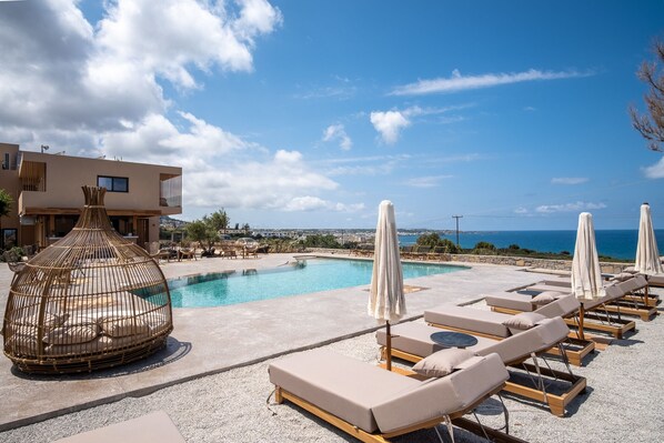 Wunderbares Resort. Wir hatten die 2 bedroom villa, die nicht nur sehr viel Platz und einen wirklich großen privaten Pool bietet, sondern auch traumhafte Blicke über das Meer. Die Terrasse ist sehr groß und sehr gut möbliert, und abends sitzt man auf einem der Balkone und genießt die Aussicht über das beleuchtete Chersonisos und die Bucht. Die Villen stehen mit 10-15 Meter Abstand zueinander, das bringt maximale Privatsphäre.