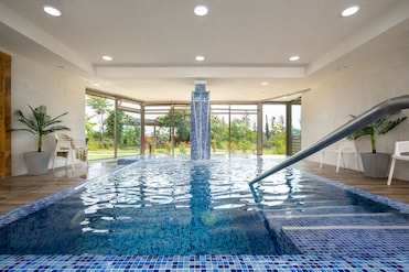 El hotel ofrece un spa de servicio completo con acceso diario, habitaciones para parejas, sauna, bañera de hidromasaje y sala de vapor. Las vistas al jardín completan la experiencia rejuvenecedora.