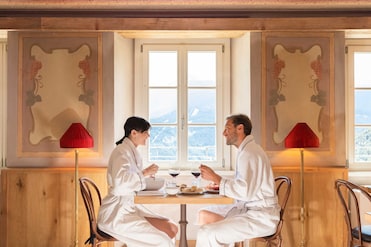 Un spa de servicio completo ofrece tratamientos diarios, desde tratamientos faciales a envolturas corporales. Te esperan bañeras de hidromasaje, sauna y fuentes minerales. Los jardines abrazan este hotel de montaña.