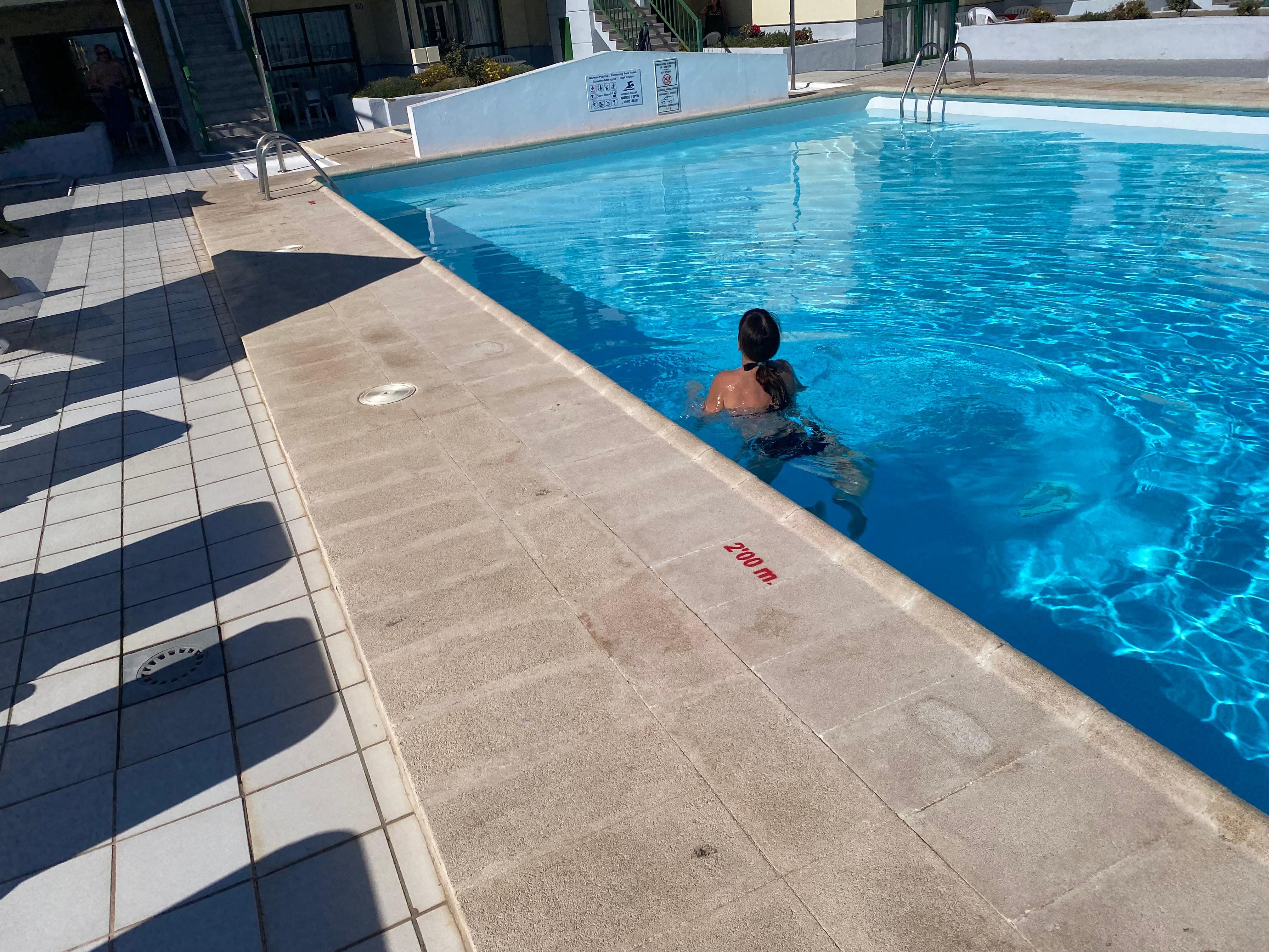 Kort vei til stranden, San Augustin kjøpesenter med spisesteder og stor spar/hyperdino ca 10 min unna, basseng med masse solsenger og poolbar som var åpen 10-17, liten uteplass tilknyttet leiligheten med bord og stoler. Buss til flyplass ca 10 min gange unna