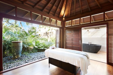 El spa de servicio completo ofrece tratamientos desde tratamientos faciales a masajes en un entorno junto a la bahía. Una sauna, una bañera de hidromasaje y un jardín completan este paraíso del bienestar.