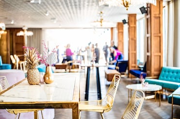 En The Rooftop, bar de copas con vistas al mar y a la piscina, solo se sirven platos ligeros. Se puede comer al aire libre (siempre que el tiempo lo permita).