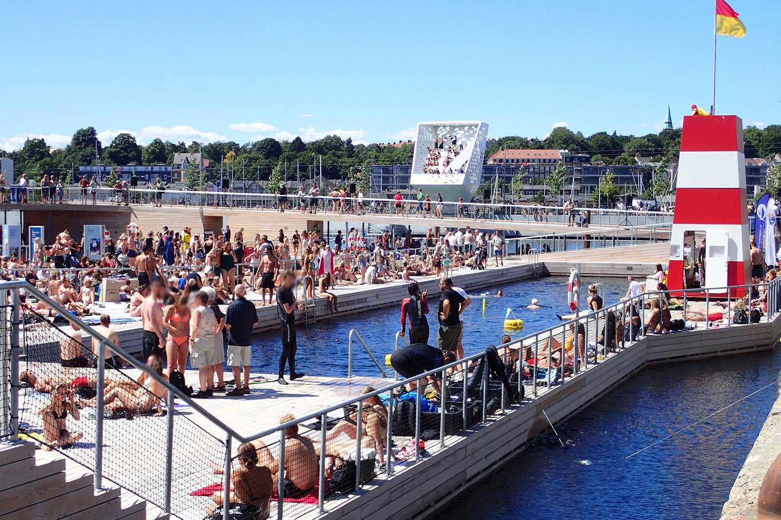 The Harbor Bath consists of a 50-metre-long pool, a kids' pool, a diving pool and two saunas, so you have plenty to choose between. You will also find a number of practical facilities, including a changing room, toilets and showers.