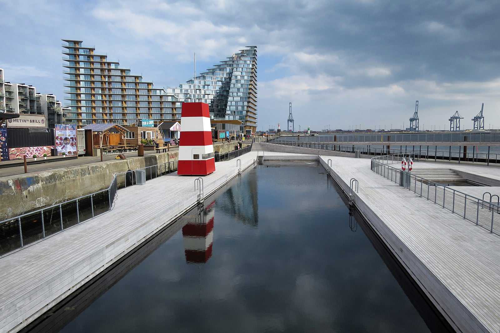 Along the pool, there are several stands selling food and drink to hungry and thirsty bathing guests. Cool down with an ice cream or a glass of white wine, and satisfy your hunger with a delicious Turkish pita bread or some sushi when your tummy starts to rumble. If you want to add some action to your bathing trip, you can also find beach volleyball courts nearby as well as Aarhus Watersport Complex, which offers activities including wakeboarding.
