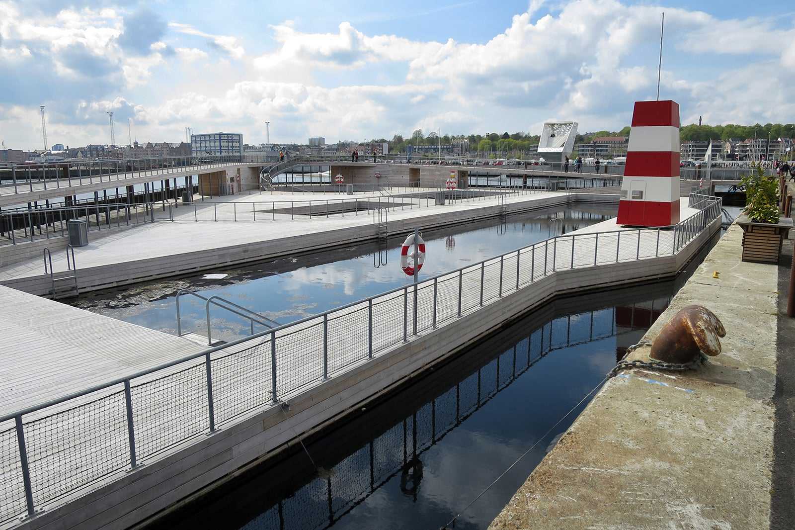 The Harbor Bath is located at Bassin 7 in the newly constructed district of Aarhus Ø, not far from the center. It takes about half an hour to walk there from the Central Station, and you can also take the bus, which stops five minutes away on foot.