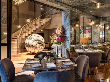 Este hotel de lujo exhibe arquitectura art déco, hermosos jardines y obras de artistas locales para un festín estético.