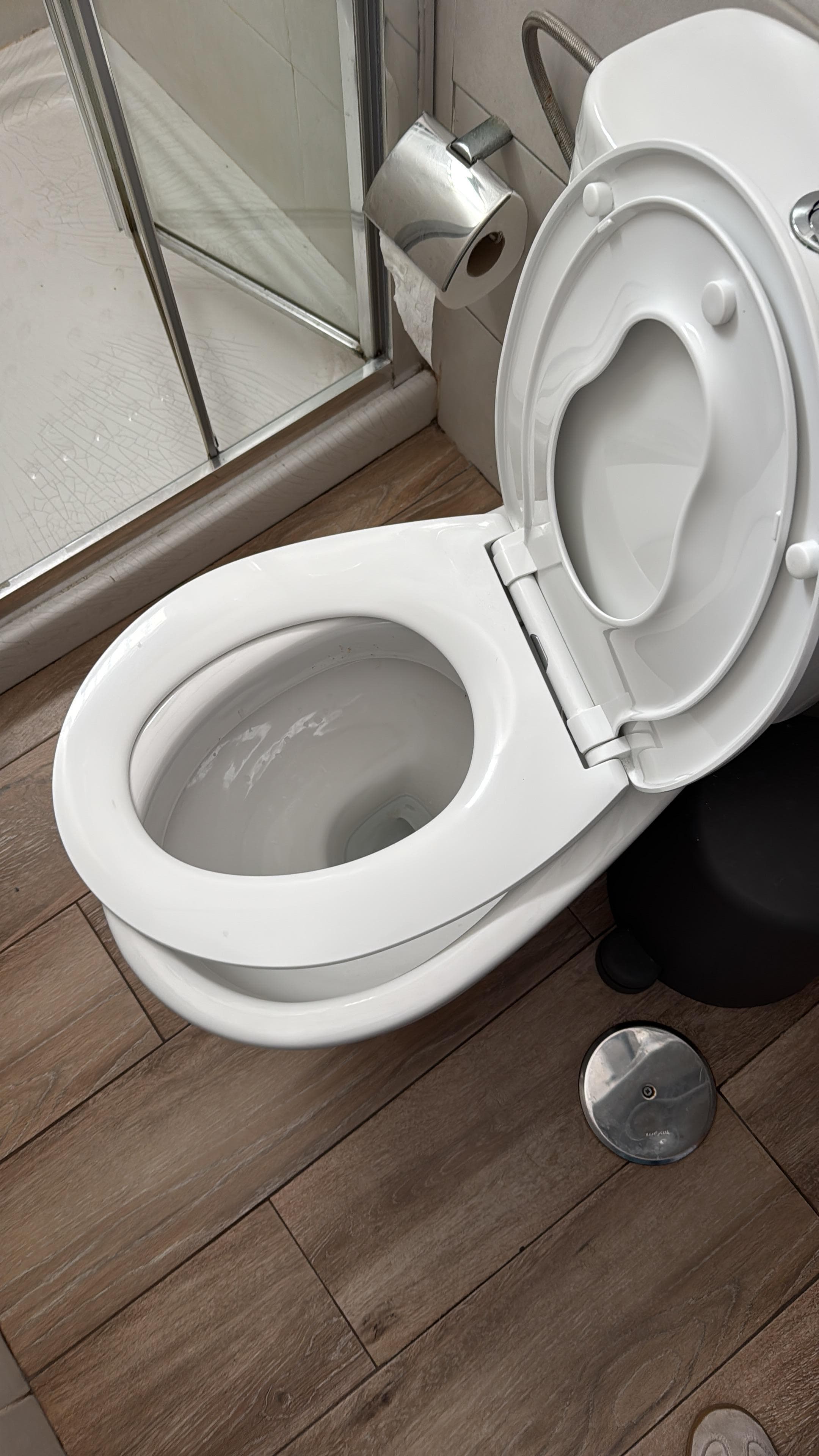 Die Toilettenbrille war nur noch an einer Seite halbwegs befestigt, man hätte sich auf keinen Fall hinsetzen können, ohne dass diese abgefallen wäre.