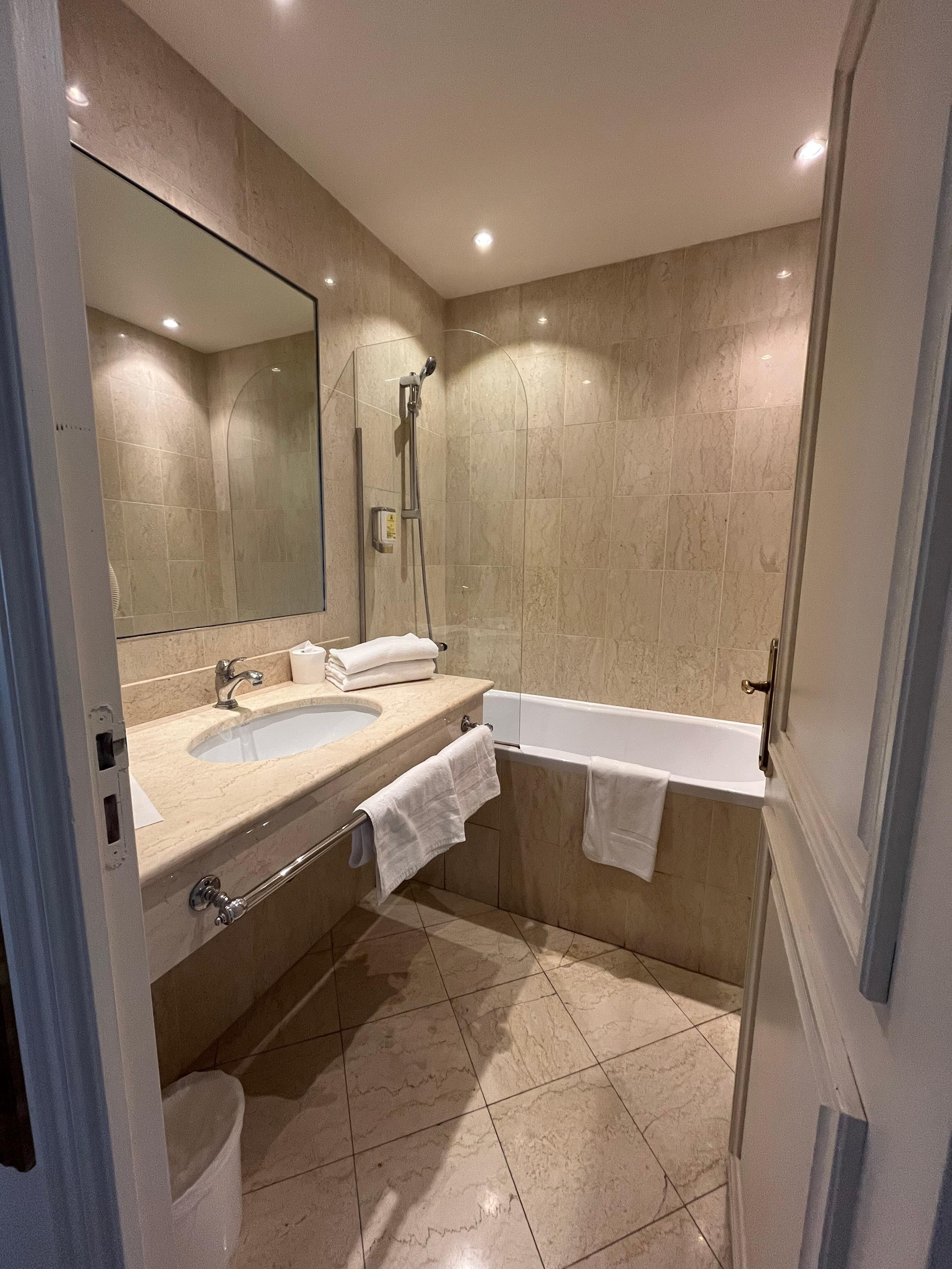 The Hotel Moderne exceeded my expectations, and you can’t beat the location! The hotel itself is beautiful and grand, and the room was very large and comfortable, with all the amenities I needed and more. The staff were incredibly kind and accommodating. I had dinner one night at the hotel restaurant, and it was an excellent experience with friendly, attentive service and delicious food. I actually wish I would have had planned to have more of my meals here. The location is very close to the Basilica, grotto, etc. which is so convenient, especially after the late torchlight procession (perfect for solo travelers!). I felt safe walking back with many other pilgrims walking that direction, too. The front desk staff was so helpful for everything I needed, including understanding the schedule of events at the Sanctuary and navigating a shuttle/bus to the local airport. I would highly recommend The Hotel Moderne and hope to visit again next time I visit Lourdes.