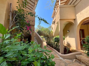 This is a beautiful property with unique, rustic design situated in the middle of the village, definitely off the beaten path! The suite we stayed in on the 4th floor had a beautiful view of the ocean and surrounding greenery. The property was well maintained and the staff was amazingly accommodating. We were very comfortable and felt quite safe. Food at the restaurant was fresh and delicious. The pool is absolutely beautiful. The only drawback is that the property is not beachfront, and although the beach is a short distance away, you will have to walk through dirty streets to get there. Other than that, our stay was perfect! We would definitely stay here again.
