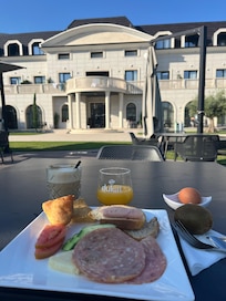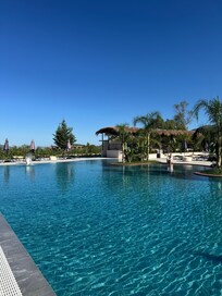 El hotel es hermoso, se nota que es nuevo. La ubicación es ideal, cerca a Vlore, Orikum y Dhermi, con parqueadero privado gratuito. Además de la piscina exterior, tiene una piscina interior hermosa y zonas húmedas. La habitación es amplia y muy cómoda, teníamos un balcón grande con vistas excelentes. Creo que el hotel tiene bastante potencial pero debe mejorar varios aspectos para que la experiencia de los huéspedes sea excelente: 1. Poner caja fuerte en las habitaciones (me sorprende que un hotel de esta categoría no tenga) 2. Mejorar el desayuno! Esto nos decepcionó mucho, muy poca variedad y nada especial, los huevos eran increíblemente grasosos, la fruta no era buena, solo un tipo de cereal, no había avena/granola, en la sección de mermeladas no había una etiqueta indicando de qué eran (había como 12 bowls y uno no sabía que se estaba comiendo), en las mesas nunca pusieron servilletas (las teníamos que pedir/buscar), para las bebidas también teníamos que buscar al mesero donde fuera que estuviera para pedirlas, etc.. 3. Mejorar el servicio/entrenar el personal, el servicio fue malo y poco profesional, atienden niños y adolescentes que no están pendientes de las necesidades de los clientes, siempre teníamos que buscarlos/perseguirlos para pedirles cosas básicas como servilletas, cubiertos, bebidas. No hay nadie en la piscina a quien se le pueda pedir bebidas ni nada por el estilo. Si el hotel mejora esto, sería perfecto y pagaría más!!! Aún así lo recomiendo
