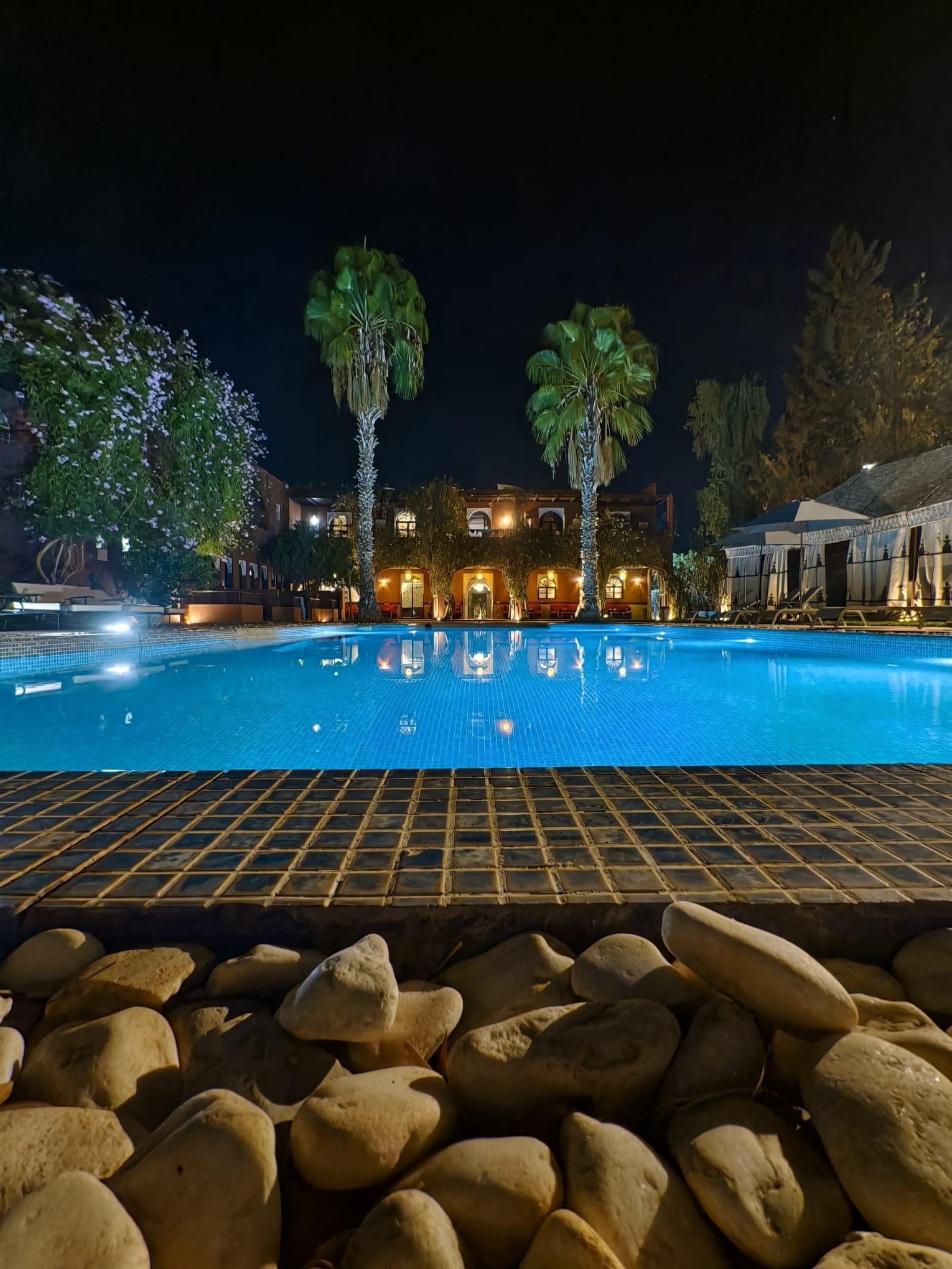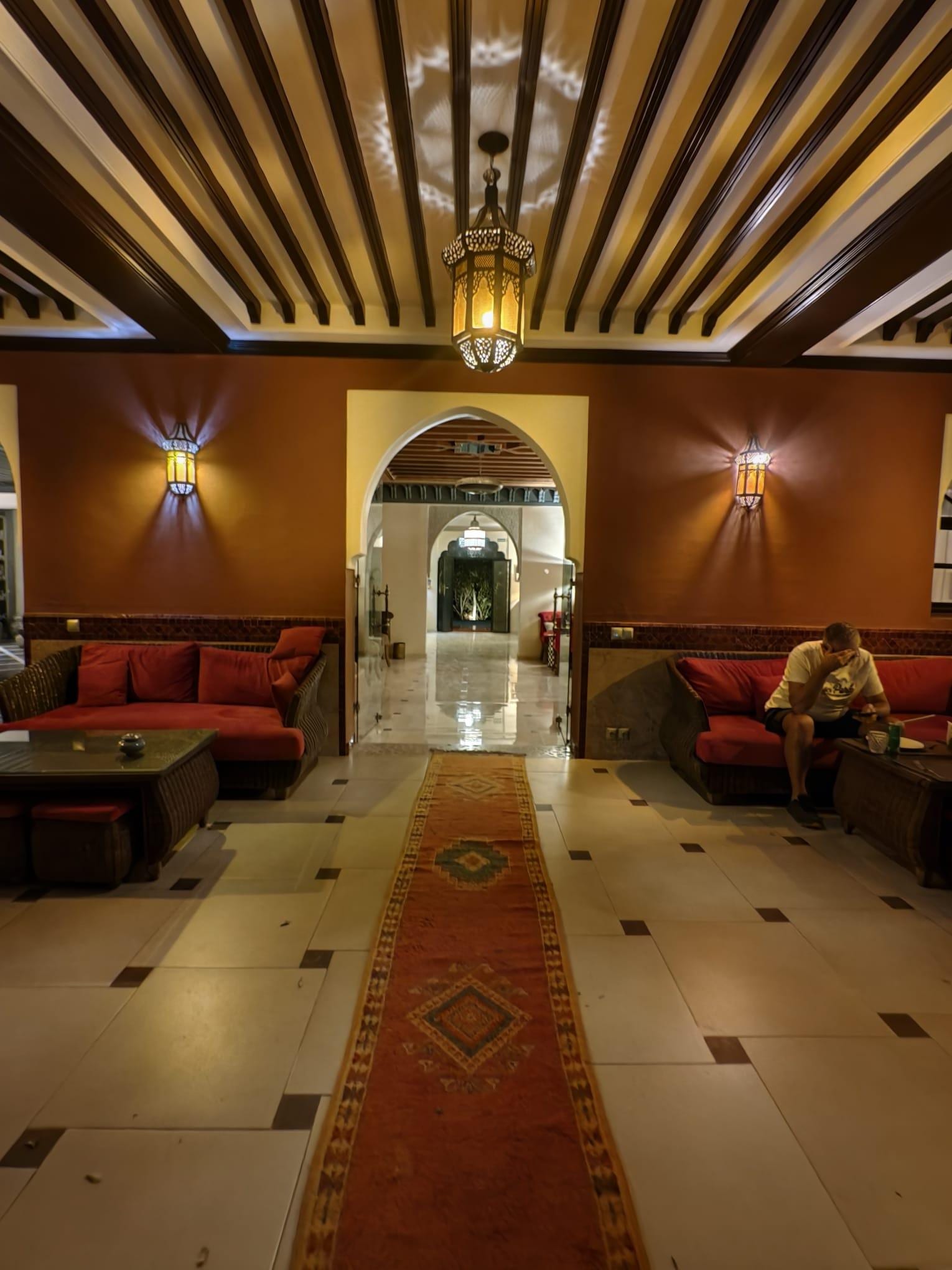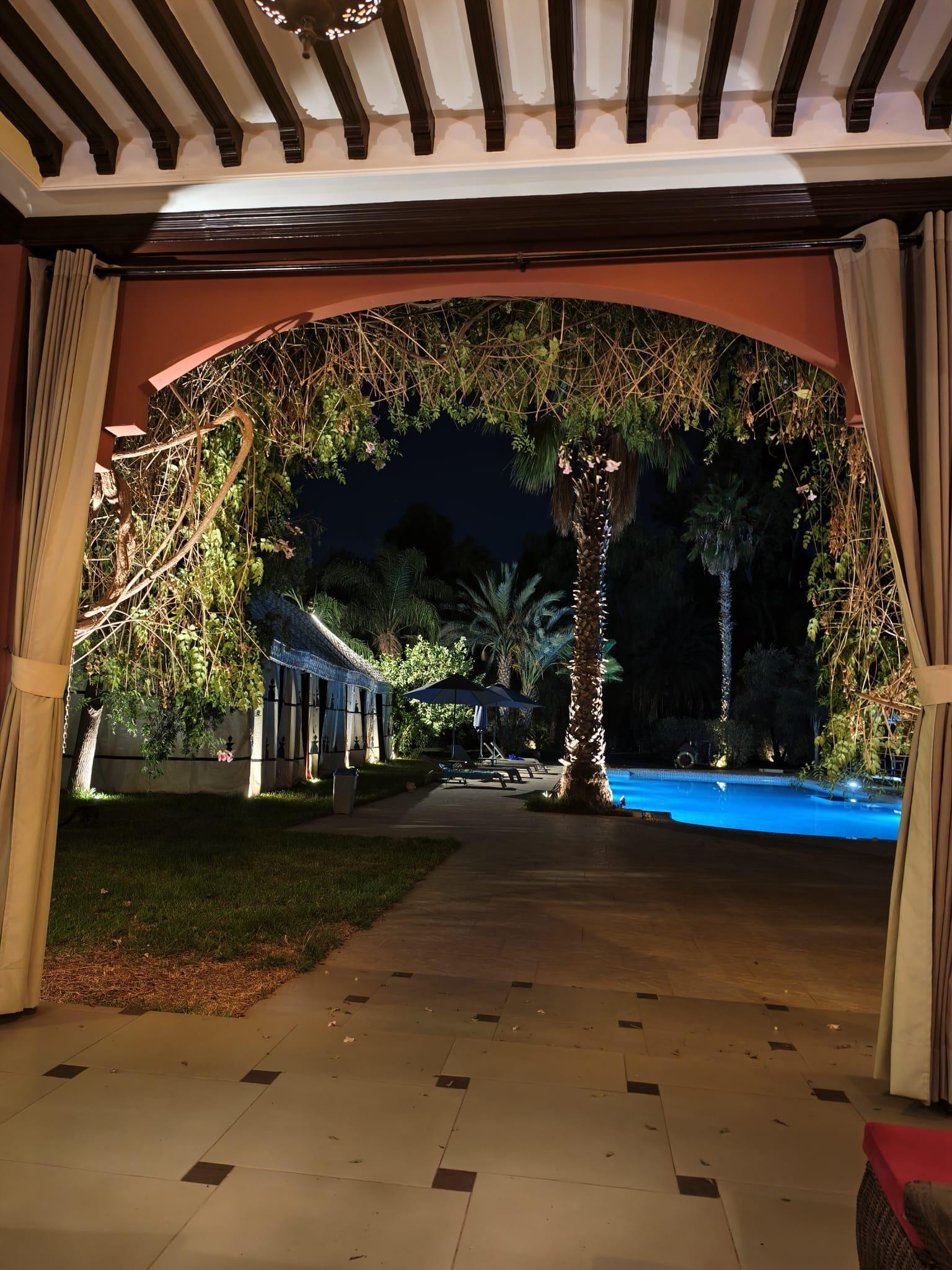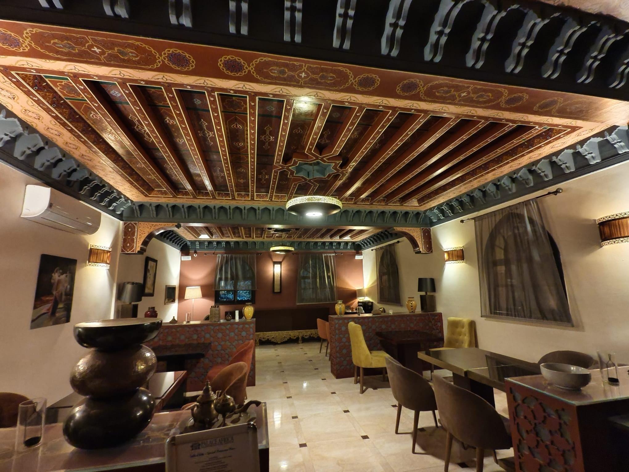 Nous avons passé un séjour très agréable au Palace Africa. Le rapport qualité-prix est excellent : pour un tarif abordable, on bénéficie d’un confort et de services de qualité, ce qui est rare près de Marrakech. L’hôtel est un peu éloigné de la ville (20-30 min en voiture), mais c’était volontaire pour profiter du calme ; l’accès reste simple via taxi ou navette. Le cadre est vraiment magnifique, un petit édén avec une décoration soignée et raffinée, et des chambres typées offrant un vrai dépaysement. L’hôtel est situé dans un quartier périphérique tranquille, loin de l’agitation du centre-ville. Un immense merci au directeur Rachid, toujours attentif et aux petits soins, qui rend le séjour encore plus agréable par sa disponibilité et sa gentillesse. Le petit-déjeuner est copieux et varié, avec options sucrées et salées, fruits frais, jus et omelettes traditionnelles. Aucun problème avec la sécurité : nous avons laissé des objets de valeur dans la chambre sans souci. La taxe de séjour (40 DH/nuit/personne) est à régler sur place ; elle est parfois mal indiquée par les opérateurs, donc il vaut mieux vérifier lors de la réservation pour éviter les mauvaises surprises. Un excellent choix pour un séjour authentique, reposant et enchanteur, je recommande vivement !