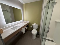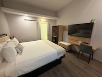 We got to park our vehicle in front of our room. Check-in was quick and cordial. Coffee and carbonated water available at the office. Breakfast is not included and that’s OK because it is not advertised. The rooms are updated, comfortable with large bathrooms, and clean. We found the mattress a little bit hard for our back but different people have different mattress preferences. Located in a quiet neighborhood, about an eight minute walk from the mall. Food establishments nearby, a coffee shop just behind the hotel, a grocery store just a three minute drive away, at the mall. An inexpensive price, perfect for those who are looking for no-frills but a clean environment.