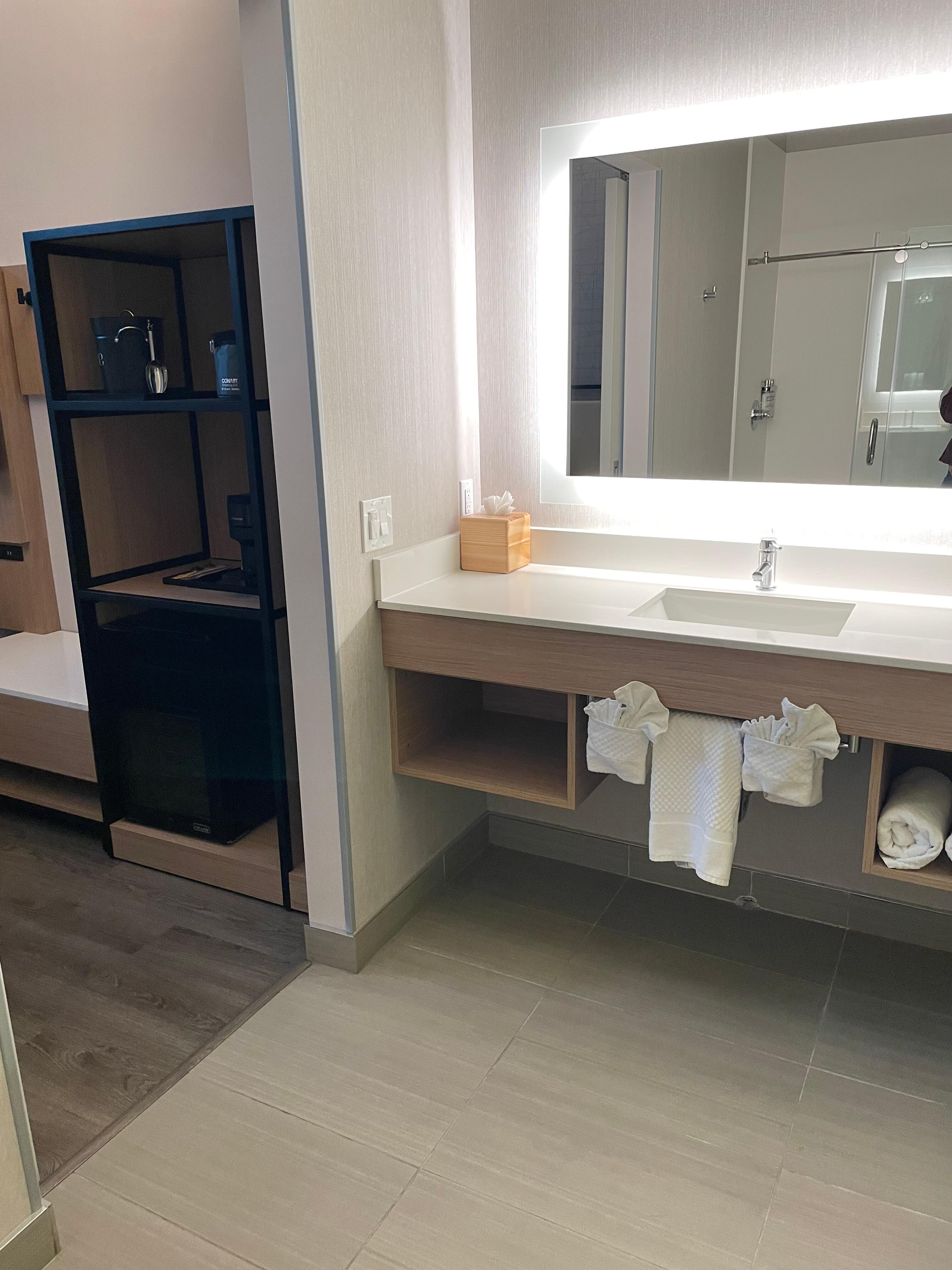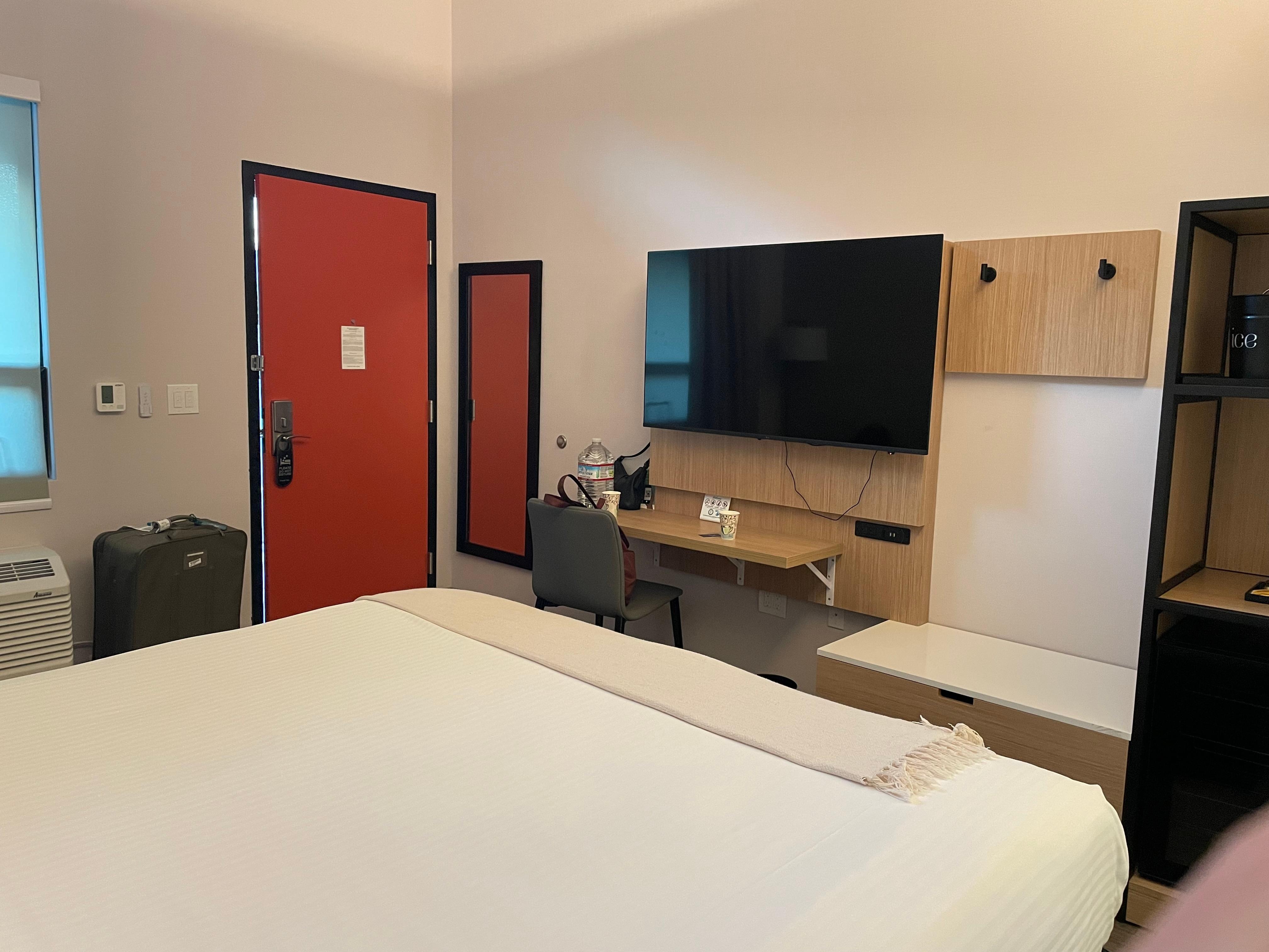 We got to park our vehicle in front of our room. Check-in was quick and cordial. Coffee and carbonated water available at the office. Breakfast is not included and that’s OK because it is not advertised. The rooms are updated, comfortable with large bathrooms, and clean. We found the mattress a little bit hard for our back but different people have different mattress preferences. Located in a quiet neighborhood, about an eight minute walk from the mall. Food establishments nearby, a coffee shop just behind the hotel, a grocery store just a three minute drive away, at the mall. An inexpensive price, perfect for those who are looking for no-frills but a clean environment.