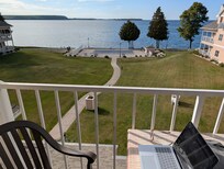 The accessible 1-bed was really nice. I'm not disabled but it really perfectly good for what I needed and roomy, and the lovely lady I confirmed my booking with got me into a top floor room with direct views onto the lake, which were absolutely gorgeous. The bed was super comfy (I felt like I was in my own bed), the weather was perfect to have the windows open, the shower was super nice and it appears they've made some improvements since I last stayed here two years ago (possibly redoing the carpets and such). Also, sitting on their little pier with a bench at 1am was so peaceful and beautiful. This is a great place, but book early as they fill up during the warm months. (It's also a 2 minute drive from my aunt's house and also convenient to both downtown sections of Sturgeon Bay and on a main road that gets up to Egg Harbor, Sister Bay, and Bailey's Harbor, so I always try to get in here when we have our annual family gathering in Door County as it's kind of central to everything and you don't have to deal with movable bridges or anything if you're heading north.) Note they even have some EV parking slots, but you'll need to bring your own cable to connect your car (and it's a slow charger, but you can trickle charge all night and stay a little topped up without driving down to Green Bay where faster chargers are).