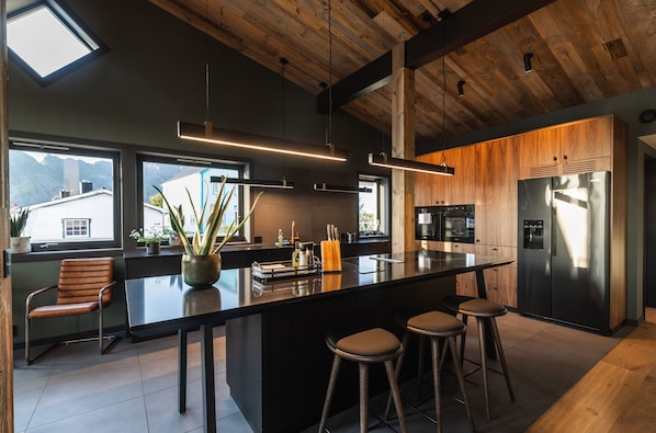 Sí, hay una cocina con tostadora y frigorífico/congelador grande.