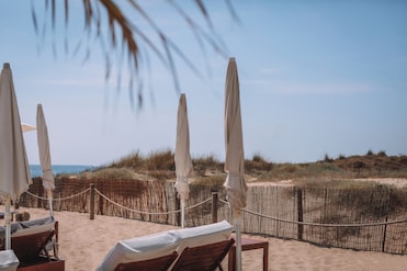 Las playas de arena de este hotel frente al mar te atraen. Las sombrillas de playa y las tumbonas ofrecen comodidad, mientras que un chiringuito sirve refrescantes bebidas en las inmediaciones.