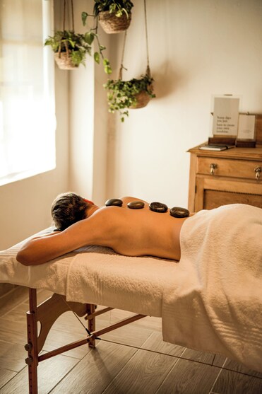 El spa de servicio completo ofrece tratamientos diarios, incluidos masajes de tejidos profundos. Las zonas de tratamiento al aire libre se encuentran junto a un exuberante jardín a orillas del río.